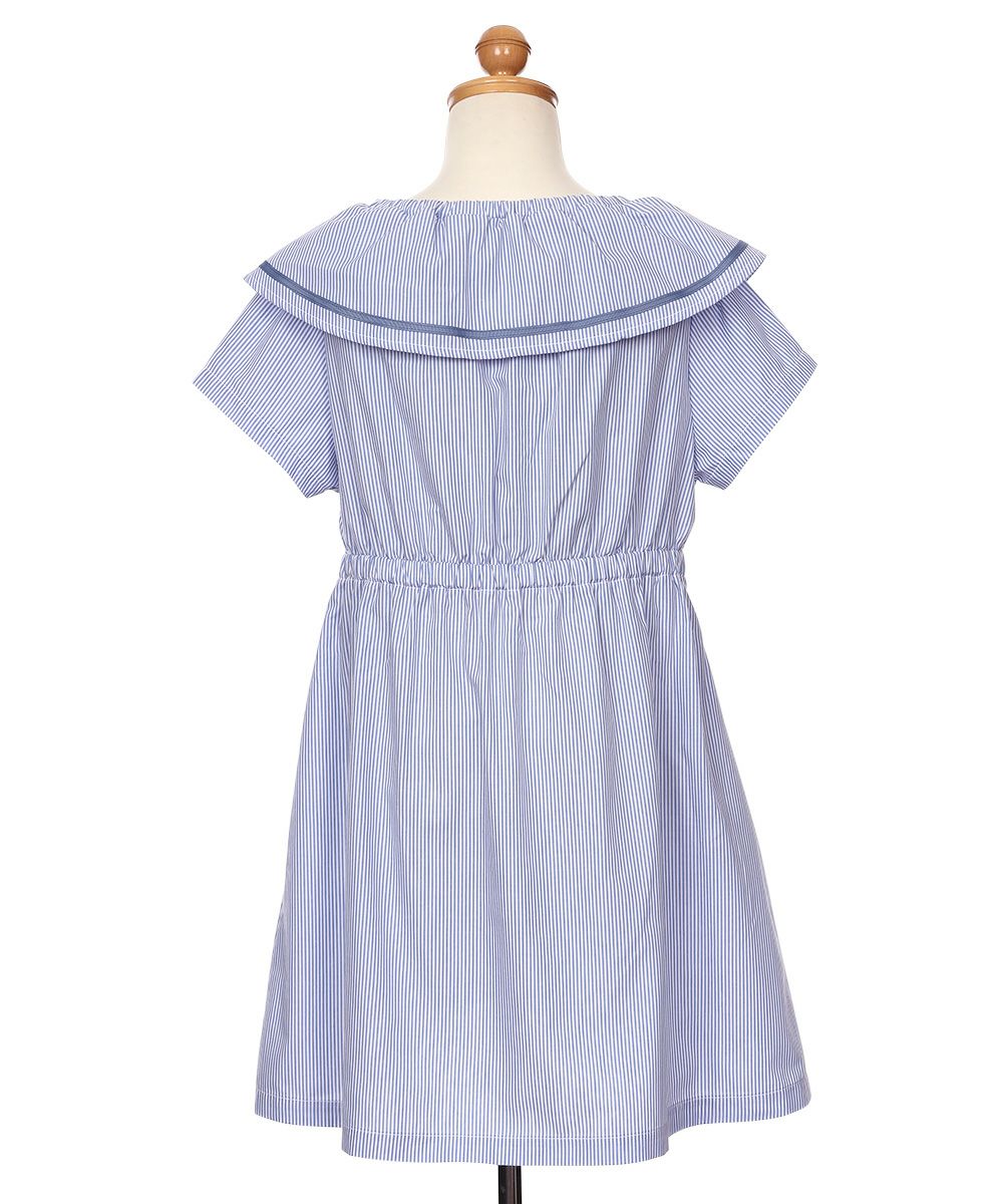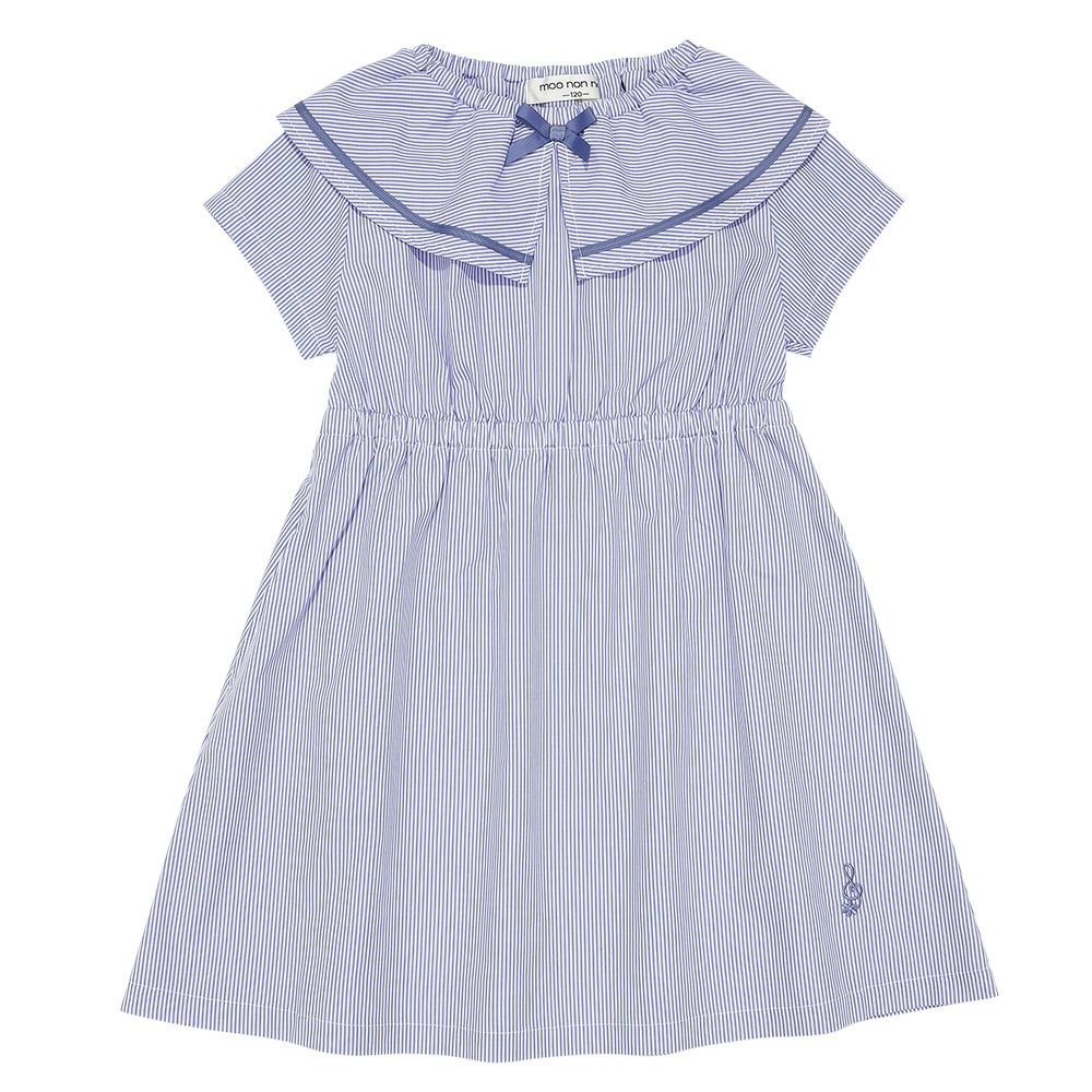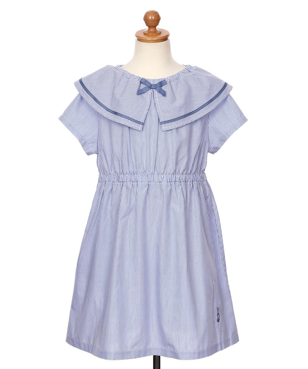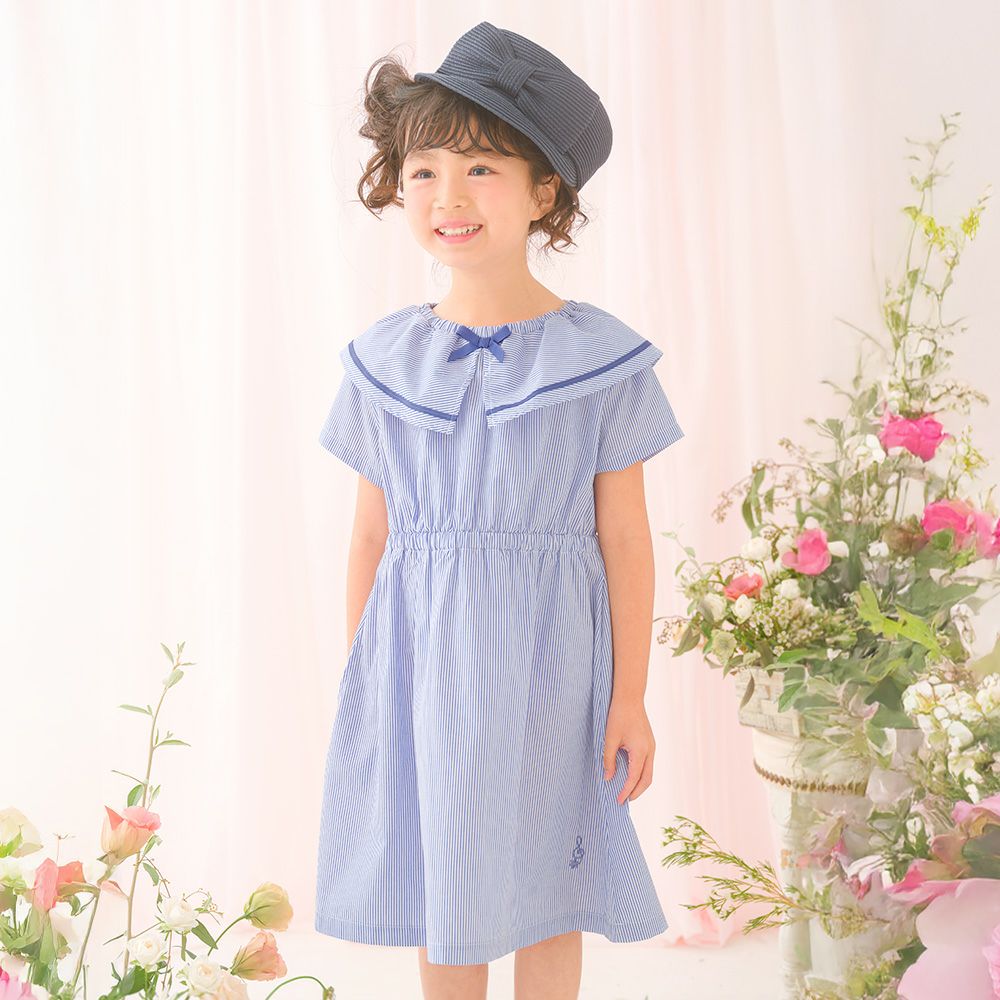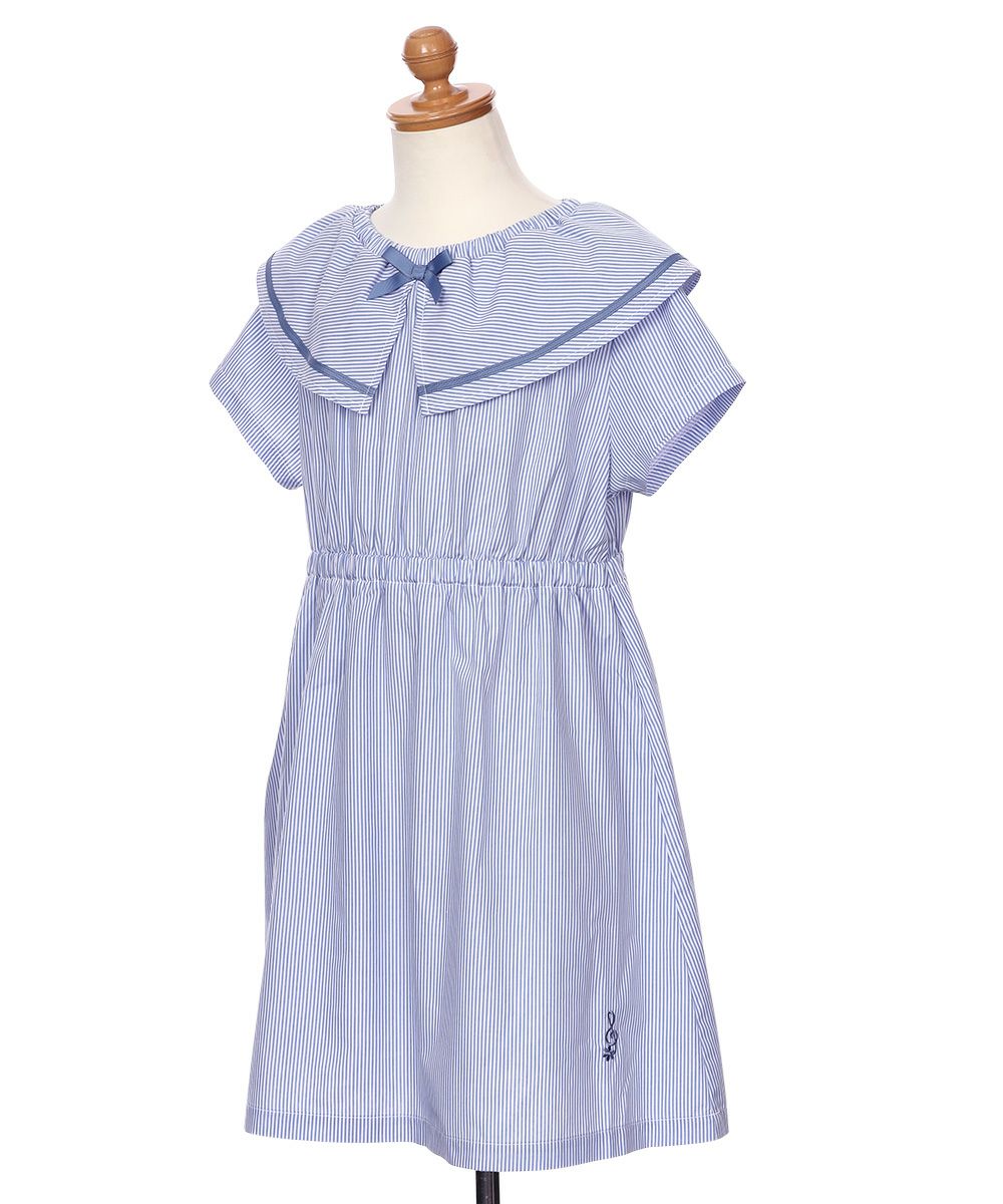 爽やかなストライプ柄と大きめの襟つきデザインが清楚で上品なワンピース♪