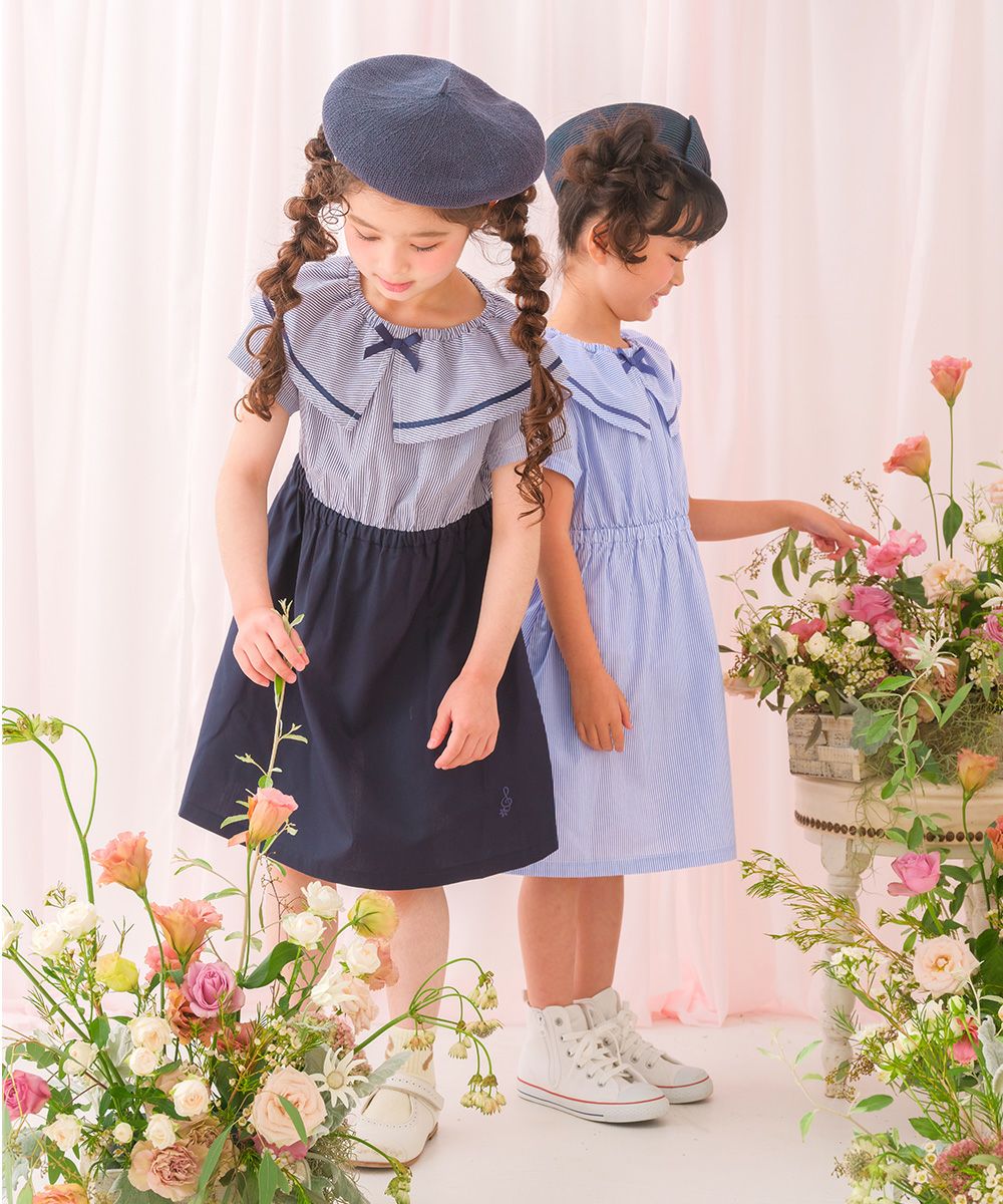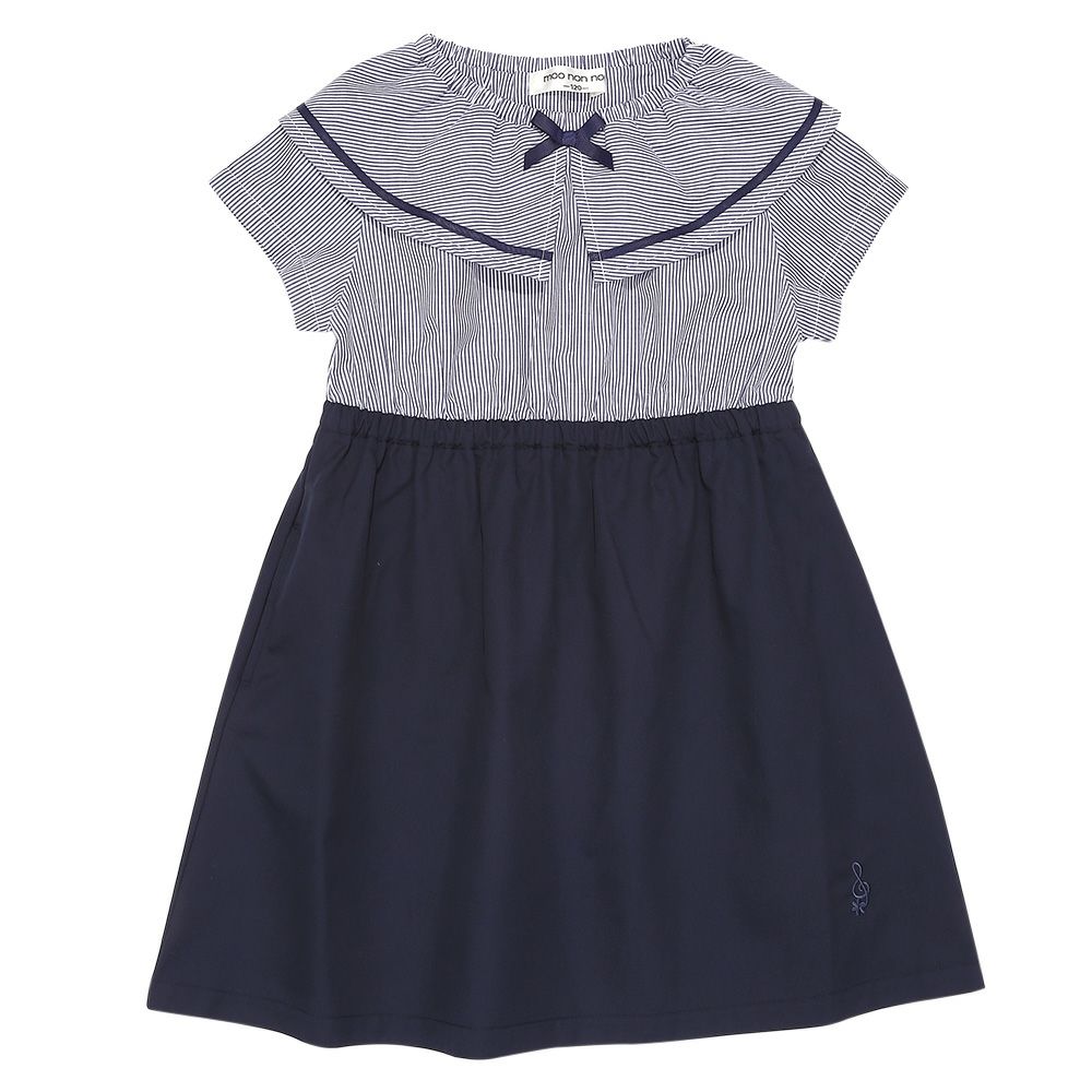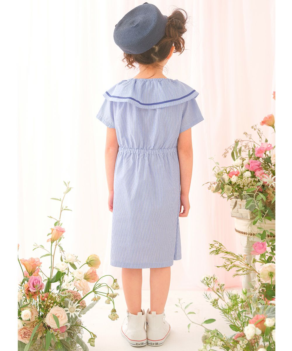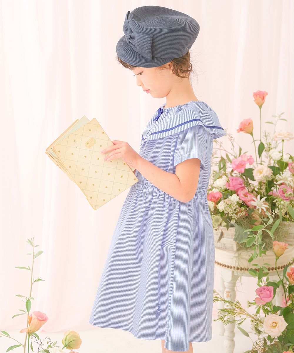 爽やかなストライプ柄と大きめの襟つきデザインが清楚で上品なワンピース♪