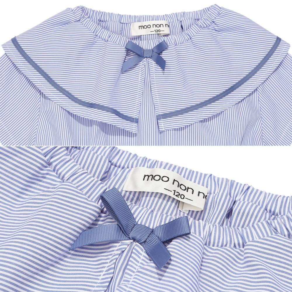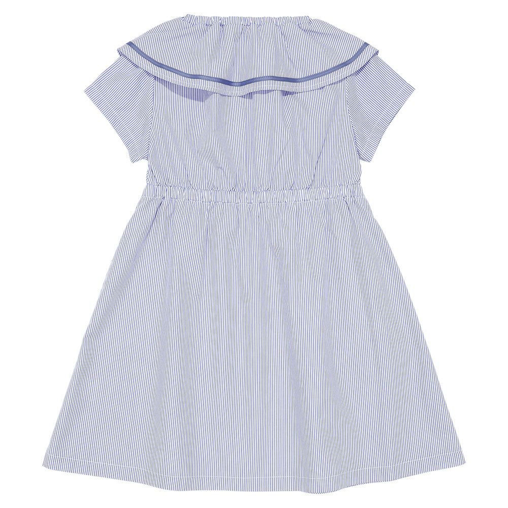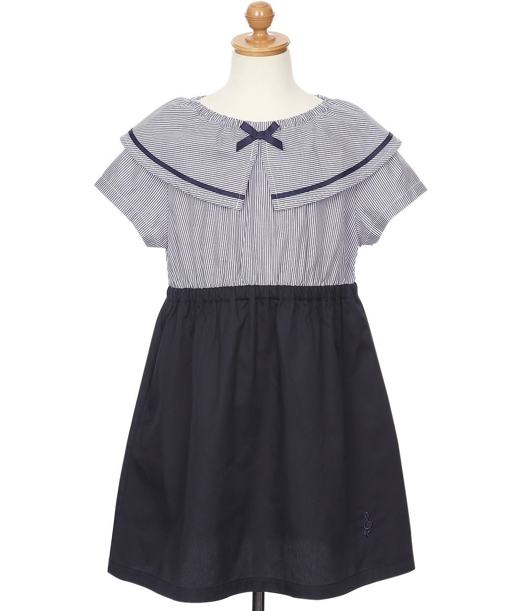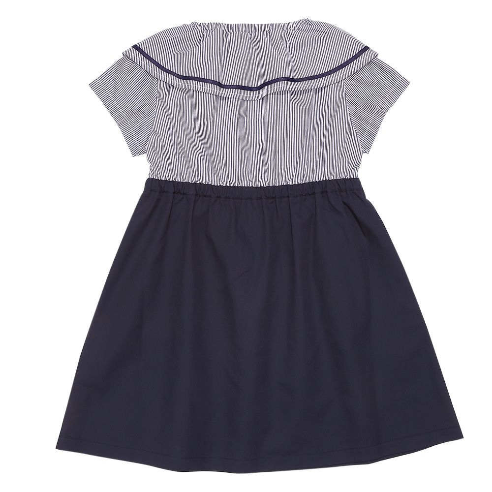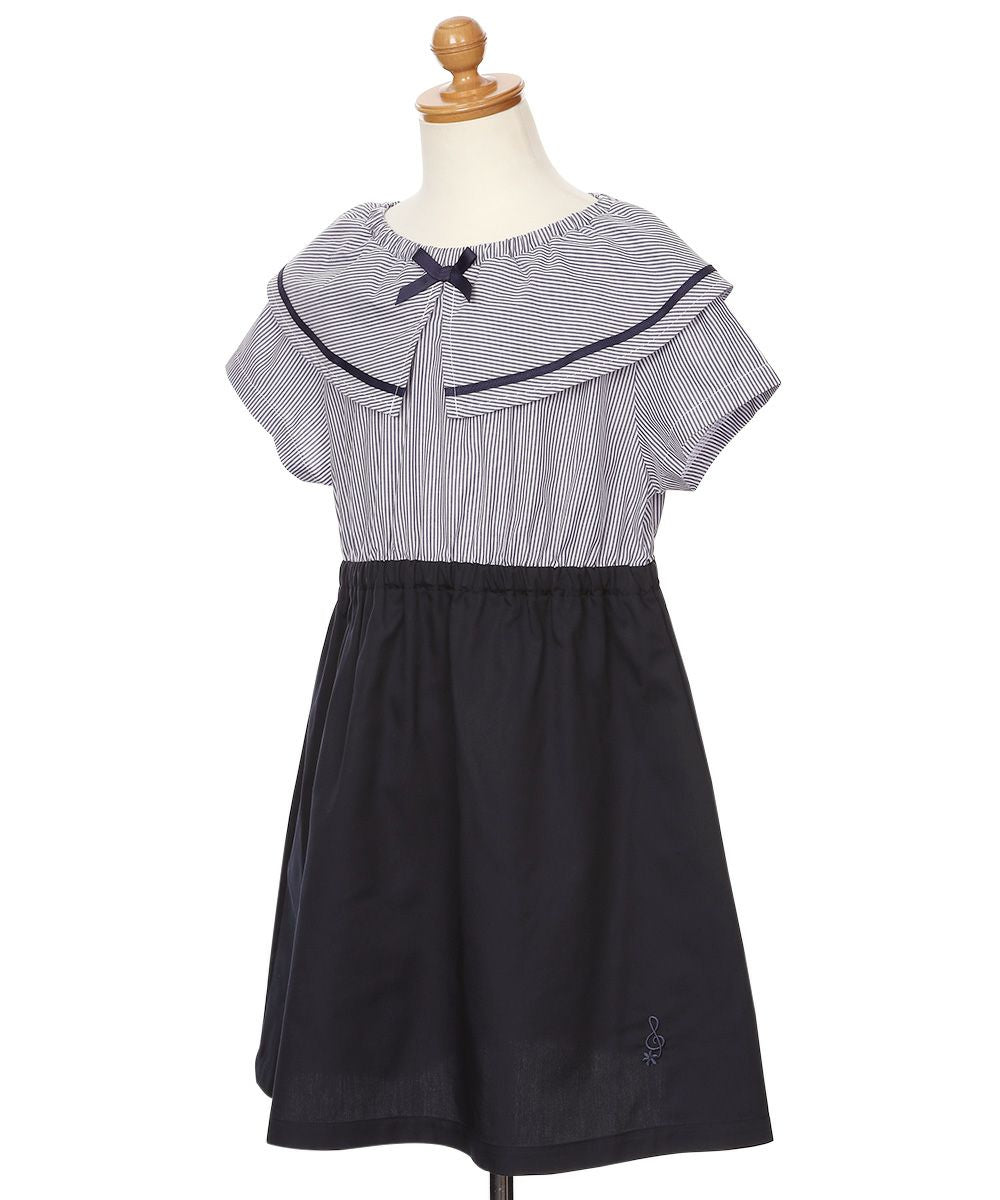 爽やかなストライプ柄と大きめの襟つきデザインが清楚で上品なワンピース♪