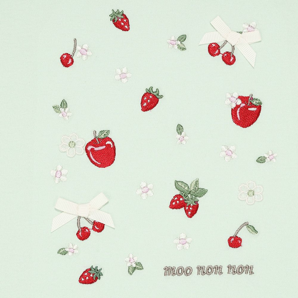 綿100% リボン チェリー刺繍Tシャツ Green Design point 2
